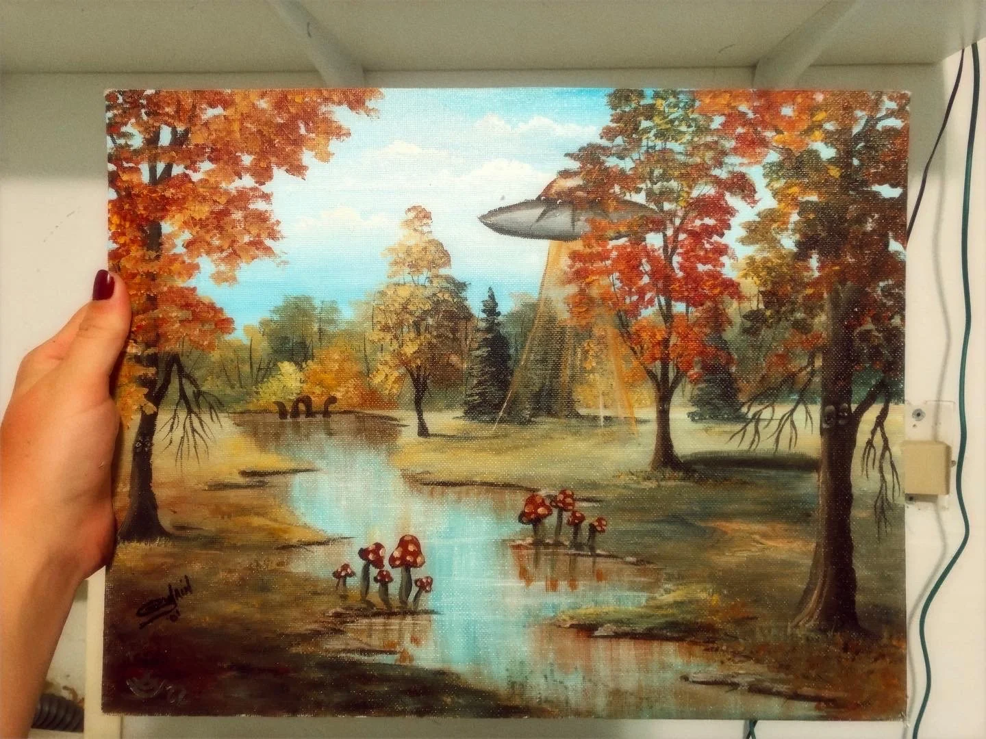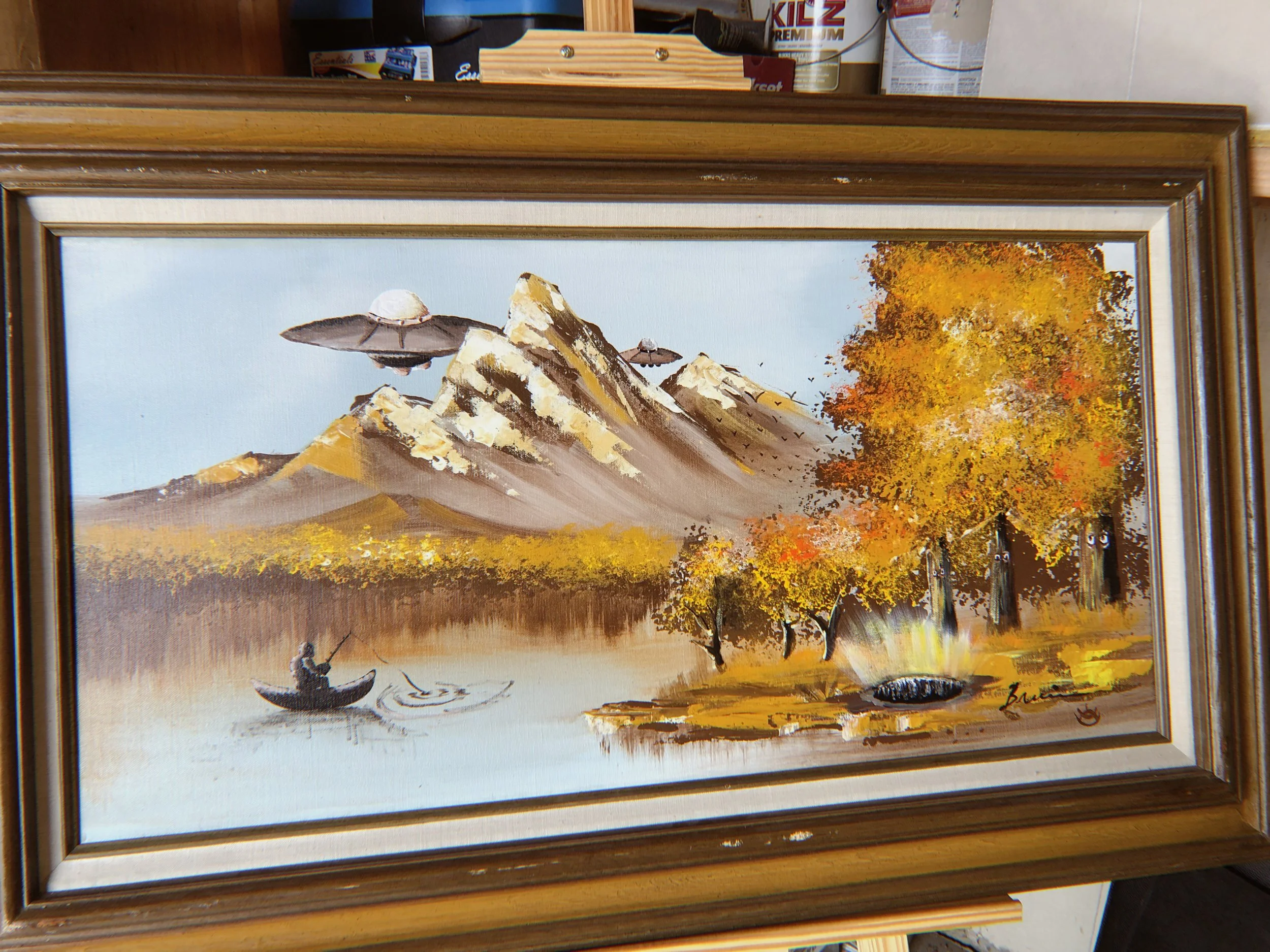 My process involves sourcing vintage oil paintings and carefully integrating unexpected elements into the existing composition. By introducing aliens, Bigfoot, and other fantastical beings, I aim to create a juxtaposition between the familiar and the extraordinary, inviting viewers to question their perception of reality.